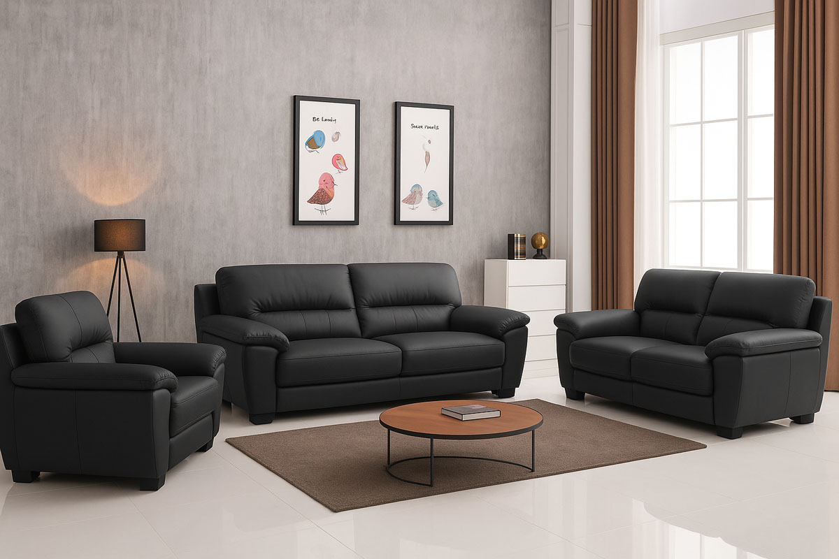Introducing the Venizia Leather Sofa in Onyx Black — a bold statement piece that exudes modern sophistication, built for those who seek comfort without compromising on style or substance.