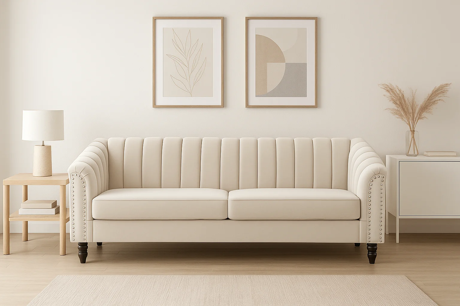 ️️️️️️ Vitte 3-Seater Sofa – Vertical Channel Tufting | Classic Roll Arms | Timeless Luxe Comfort